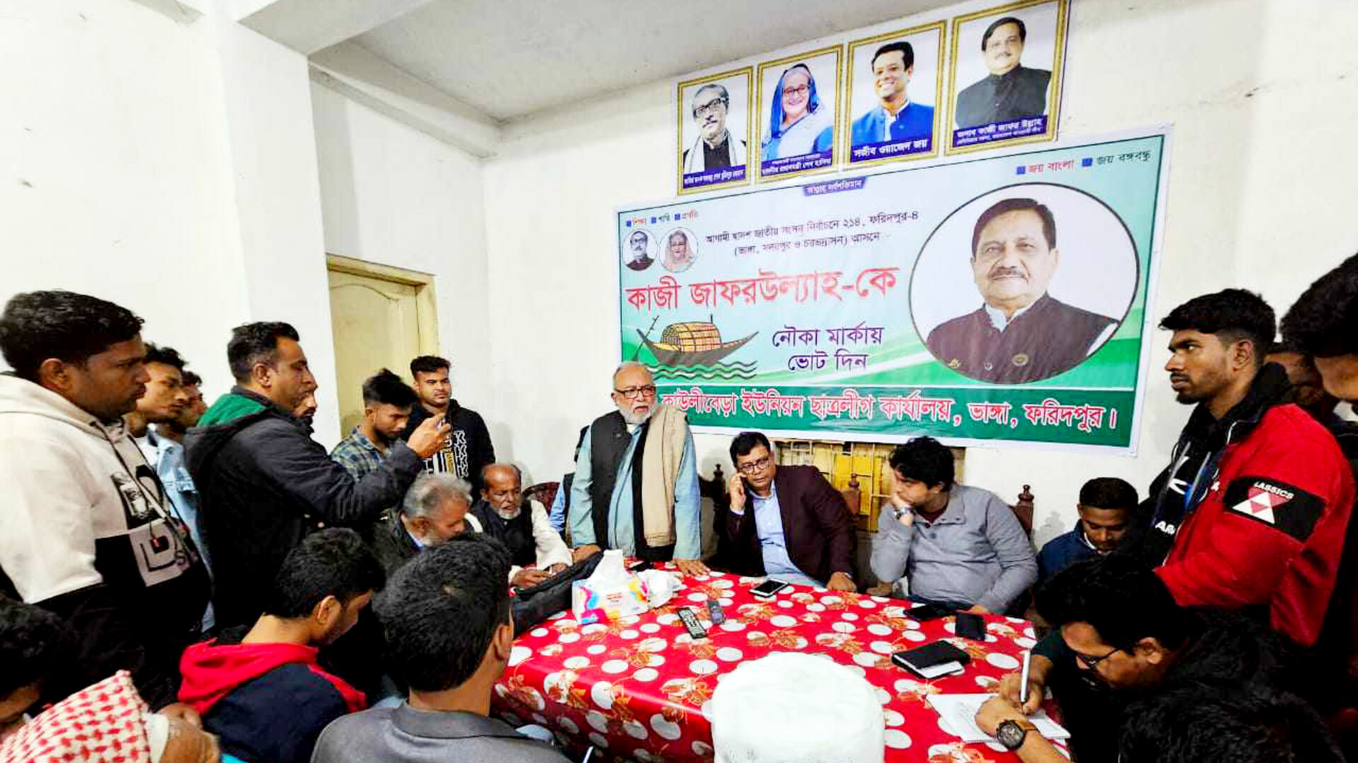 ফরিদপুরের ভাঙ্গা উপজেলার কাউলীবেড়ায় আওয়ামীলীগ কার্যালয়ের ৩য় তলায় ইউনিয়ন ছাত্র লীগের কার্যালয়ের শুভ উদ্বোধন উপলক্ষে আজ মঙ্গলবার (১২ ডিসেম্বর) সন্ধায় উপস্থিত ছিলেন,ফরিদপুর জেলা আওয়ামীলীগের সহ-সভাপতি কাজী হেদায়েত উল্লাহ সাকলাইন,কাউলীবেড়া ইউনিয়ন পরিষদের সুযোগ্য চেয়ারম্যান মোঃ রেজাউল হাসনাত দুদু মিয়া, কাউলীবেড়া ইউনিয়ন আওয়ামীলীগের সভাপতি কাজী আহসান উল্লাহ উজ্জ্বল,সাধারণ সম্পাদক মজিবুর রহমান শেখ,যুগ্ম সাধারণ সম্পাদক ও সাংবাদিক মোঃ ওয়াহিদুজ্জামান, ভাংগা উপজেলা আওয়ামীলীগের প্রচার সম্পাদক ভাস্কর ভট্টাচার্য সহ অসংখ্য ছাত্র লীগের নেতা কর্মি ও সুধী সমাজের নেতৃবৃন্দ প্রমুখ।